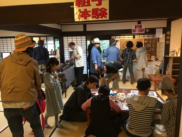6月10日、11日に開催された、手仕事アート展「こでんてんin黒石こみせ2017」は、町全体がイベント会場となり、全国各地から集まった手しご作品を一目見ようとたくさんの方々で賑わいました。松の湯交流館には、自然木作品や陶芸作品、組子細工、リメイク服など9つのお店が展示しました。また、十文字カフェもナシゴレンやビビンバ、ガバオライス、から揚げなど普段提供していないメニューで盛り上げました。