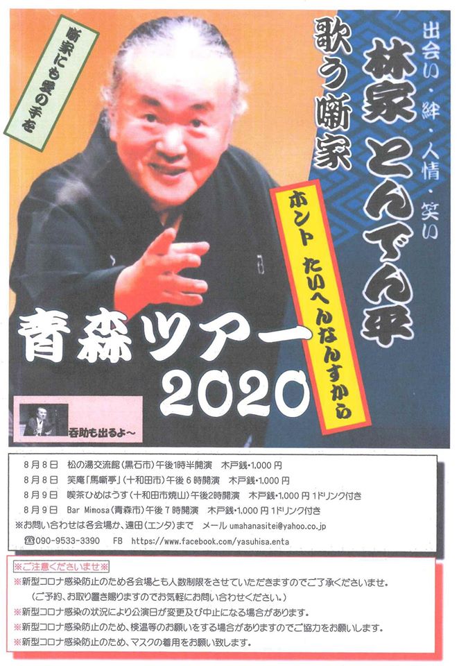 噺家にも愛の手を 「林家 とんでん平 青森ツアー2020」 ~ホントたいへんなんすから~ 8/8(土)午後1時半より 当館 市...続きを読む2020.07.19 イベント インフォメーション お知らせ